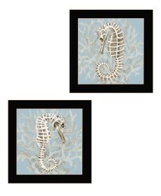 "Coral Seahorse Collection" 2-Piece Vignette By Cindy Jacobs, Ready to Hang Framed Print, Black Frame