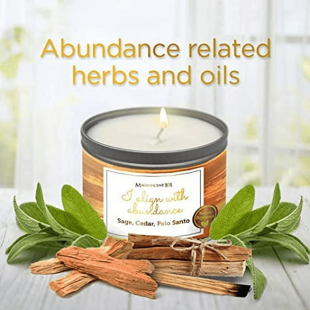 Choosing to sit and let go of negative energy in a ritual like this improves mental clarity and opens up intuition, allowing you to set a genuine intention for your life and get into alignment with it. This healing candle was produced for smudging, purification, spiritual awareness, stress relief, anxiety soothing and ultimately providing an energy boost. Magnificent 101 align with abundance 6oz affirmation candle with sage, cedar, and palo santo