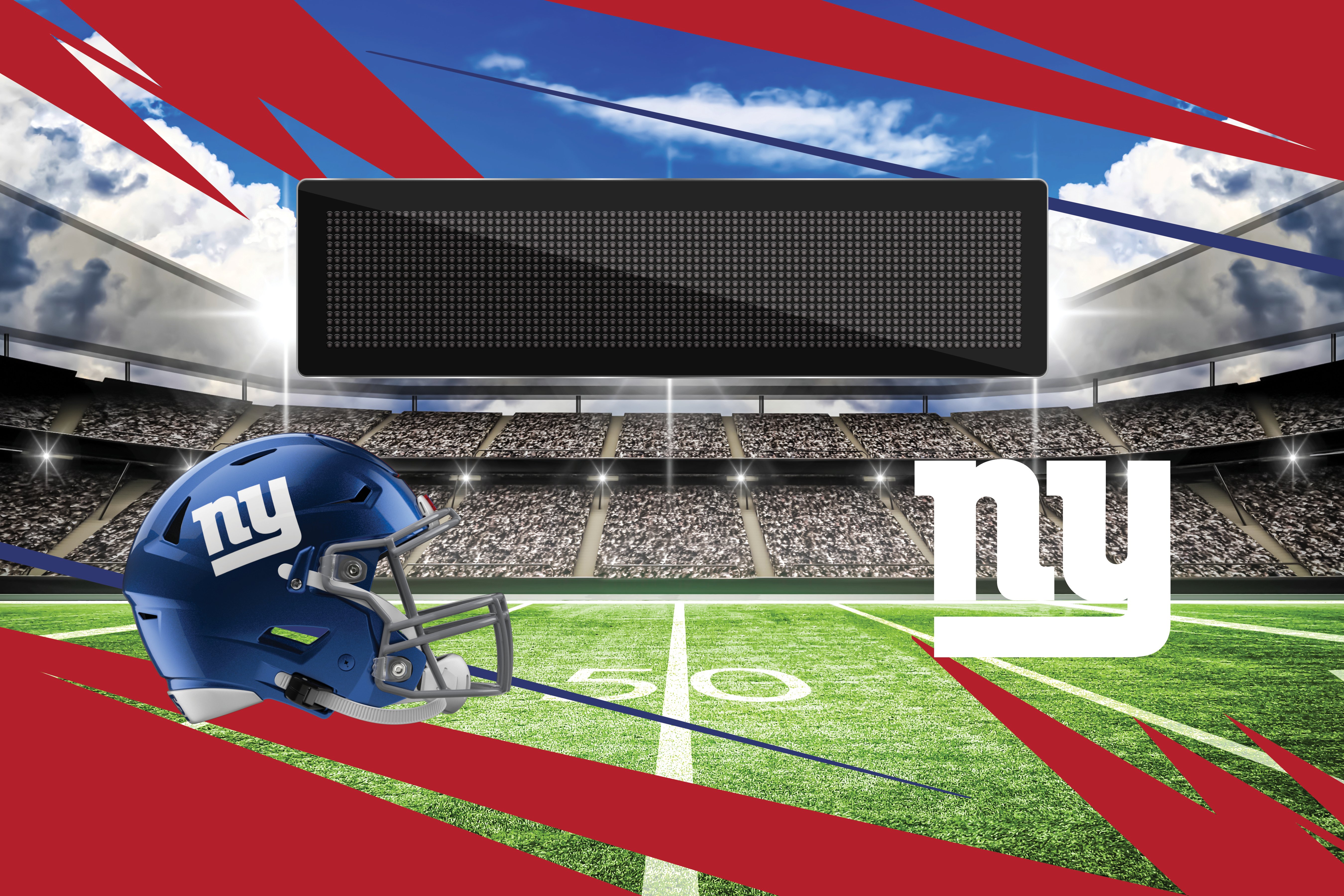 Features a football stadium, helmet and your favorite teams logo with a scoreboard ready for your personalization