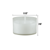Each tealight candle measures 1.5" diameter by 7/8" height